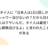 タイ人に「日本人は1日1回しかシャワー浴びないの?だから日本人はクサいんだ。タイ人は最低でも朝晩浴びるよ」と言われたことがある