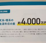 大学オープンキャンパスの保護者向けパンフにあった、理系と文系の生涯年収の差を示したグラフより男女の年収差が大きすぎた