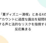 「夏ディズニー満喫」とあるXのアカウントに過度な露出を疑問視する声と法的なリスクを指摘する反応集まる