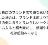 百貨店のブランド店で嫌な思いをした場合は、ブランド本部より百貨店側に言うと良いらしい→クレーム入ると超大変だし、感謝やお礼は超励みになる