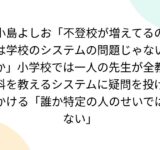 小島よしお「不登校が増えてるのは学校のシステムの問題じゃないか」小学校では一人の先生が全教科を教えるシステムに疑問を投げかける「誰か特定の人のせいではない」