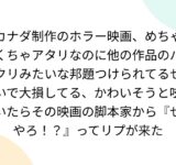 カナダ制作のホラー映画、めちゃくちゃアタリなのに他の作品のパクリみたいな邦題つけられてるせいで大損してる、かわいそうと呟いたらその映画の脚本家から『せやろ!?』ってリプが来た