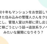 何十年もマンションをお世話してきた住み込みの管理人さんをクビにし、管理人室は外部に貸し出して稼ごうという話→追放系ラノベみたいな展開になりそう?