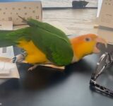 「3つも!?」机の上で遊ぶインコが欲張り過ぎた結果(動画)
