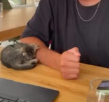もたれかかって眠る子猫…「そっと離れようとしたら逃してくれない!」