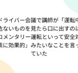 ドライバー会議で講師が「運転中危ないものを見たら口に出すのはコメンタリー運転といって安全対策に効果的」みたいなことを言っていた
