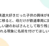 鉄道大好きだった子供の興味が他に移ると、母だけが鉄道車両に詳しい謎のおばさんとして取り残される現象に名前を付けてほしい