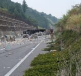 新東名高速道路で起きた大型トレーラーの横転事故現場を撮影した様子がいろんな意味で悲惨すぎる→「しかもこれ産業廃棄物なのかよ」「特に何もない場所なのに…」