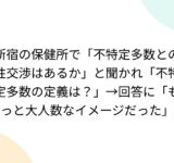 新宿の保健所で「不特定多数との性交渉はあるか」と聞かれ「不特定多数の定義は?」→回答に「もっと大人数なイメージだった」