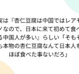 実は『杏仁豆腐は中国ではレアモノなので、日本に来て初めて食べる中国人が多い』らしい「そもそも本物の杏仁豆腐なんて日本人もほぼ食べた事ないだろ」