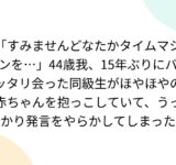 「すみませんどなたかタイムマシンを…」44歳我、15年ぶりにバッタリ会った同級生がほやほやの赤ちゃんを抱っこしていて、うっかり発言をやらかしてしまった