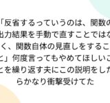 「反省するっていうのは、関数の出力結果を手動で直すことではなく、関数自体の見直しをすること」何度言ってもやめてほしいことを繰り返す夫にこの説明をしたらかなり衝撃受けてた