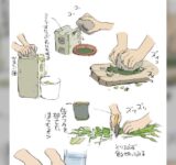 小学生の頃に校庭で薬作りごっこで遊んでいた様子を描いたイラストへ「ドクダミとか使った」「毒薬を作ってた」など様々な記憶が集まる