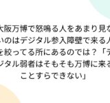 大阪万博で怒鳴る人をあまり見ないのはデジタル参入障壁で来る人を絞ってる所にあるのでは?「デジタル弱者はそもそも万博に来ることすらできない」