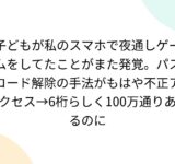 子どもが私のスマホで夜通しゲームをしてたことがまた発覚。パスコード解除の手法がもはや不正アクセス→6桁らしく100万通りあるのに