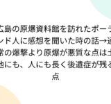 広島の原爆資料館を訪れたポーランド人に感想を聞いた時の話→通常の爆撃より原爆が悪質な点は土地にも、人にも長く後遺症が残る点