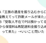 A『王族の遺産を振り込むから口座教えてって詐欺メールが来た』B『受取人不在でPS5預かってるから保管料&再配達料金振り込めって来た』→いいこと閃いた