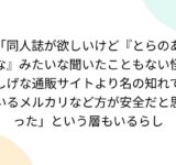 「同人誌が欲しいけど『とらのあな』みたいな聞いたこともない怪しげな通販サイトより名の知れているメルカリなど方が安全だと思った」という層もいるらし