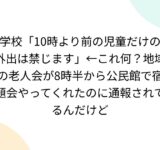 学校「10時より前の児童だけの外出は禁じます」←これ何?地域の老人会が8時半から公民館で宿題会やってくれたのに通報されてるんだけど