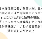日本在住歴の長い外国人が、日本に順応するほど母国語コミュニティとこじれがちな独特の現象、「マイジャパン症候群」という概念が興味深い…いわゆる古参厨に通じるものがある?