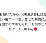 お願いだから、QR決済各社は支払い用コード表示させた瞬間に広告出すのやめてくれ…お前のことだぞ、AEON Pay😡