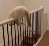 「不安しかない…」猫が2階の手すりの上でしっぽ遊びを始めた結果(動画)