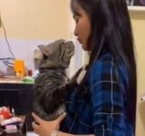飼い主のお姉さんにキスと抱っこを求める猫(動画)