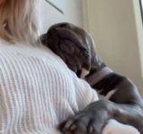 「リラックスしすぎ…」電車で女性に抱きついて眠る犬(動画)