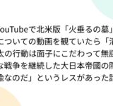 YouTubeで北米版「火垂るの墓」についての動画を観ていたら「清太の行動は面子にこだわって無謀な戦争を継続した大日本帝國の隠喩なのだ」というレスがあった話
