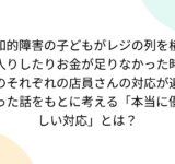 知的障害の子どもがレジの列を横入りしたりお金が足りなかった時のそれぞれの店員さんの対応が違った話をもとに考える「本当に優しい対応」とは?