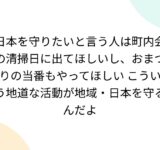 日本を守りたいと言う人は町内会の清掃日に出てほしいし、おまつりの当番もやってほしい こういう地道な活動が地域・日本を守るんだよ