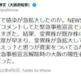 吉村知事「大阪は感染を抑えすぎた結果、変異株が急拡大してる説。ストンとくる」