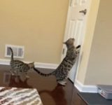 「こうするニャ…」おとなの猫が子猫にドアの開け方を教える(動画)