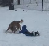 男の子が乗ったそりを…引っぱりまわしてくれる犬(動画)