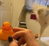 「彼女は渡さない!」インコがアヒルのおもちゃに激しくジェラシーを燃やす(動画)