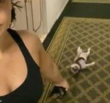 「背中の感触が気持ちいい…」引きずられるのが好きな犬(動画)