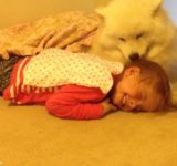 ああ幸せそう…モフモフの犬と女の子が添い寝をする(動画)