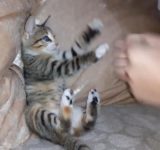 子猫とネコパンチの特訓…女性がお手本を見せる(動画)