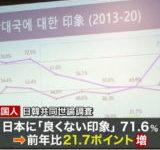 【超絶大悲報】韓国国民の7割以上が日本に「良くない印象」前年より20ポイント以上増加