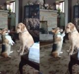 足の短いコーギー、ラブラドールに嫉妬する(動画)