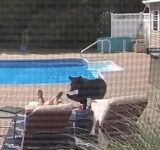 侵入したクマがプールサイドで眠っていた男性の足を突っついて起こす…監視カメラに映っていた(動画)