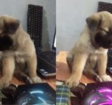 子犬がパソコンの横でウトウト…倒れる? 倒れない?(動画)