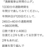副業の神「毎日通勤に30分かけると1年で408日も無駄にしてることになります」