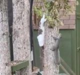 木に登ってリスと遊ぼうとする猫だったけど…(動画)