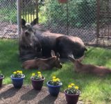 「自宅で仕事をしていたら庭にヘラジカの親子がやって来た…大きい!」