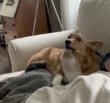 「コチョコチョして!」アピールがちょっぴり強引なコーギー犬(動画)