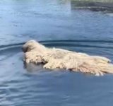 「モップが川で泳いでる!?」→よく見ると犬だった(動画)