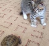 全身を使って亀に戦いを挑む…子猫(動画)
