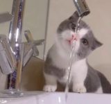 子猫、蛇口から流れ落ちる水と戦う(動画)