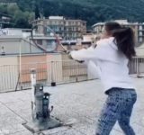 イタリアの少女2人、向かい合ったビルの屋上を使ってテニスをする(動画)